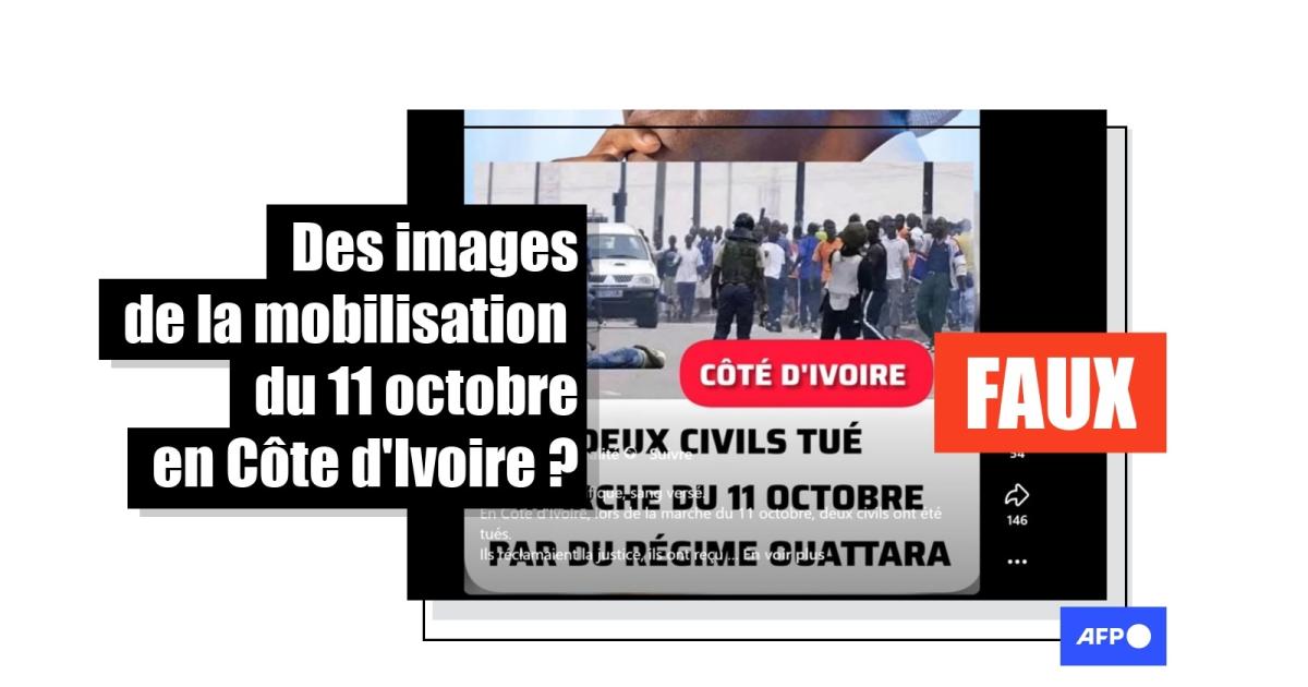 Plusieurs publications sur Facebook affirment que "deux civils" auraient été tués dans la marche du 11 octobre par le "régime Ouattara" (1,2,3), l'une d'entre elles cumulant plus de 16.000 réactions et 4.800 commentaires.