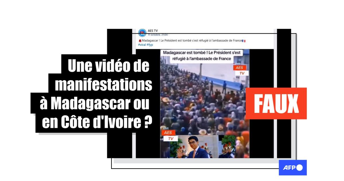 Plusieurs semaines de manifestations intenses dans les rues de Madagascar ont conduit au renversement de l'ex-président Andry Rajoelina et à l'instauration d'un régime militaire. Une vidéo de foule massive, partagée des dizaines de milliers de fois en Afrique francophone, prétend montrer ces manifestations de la jeunesse malgache, qui dénonçait initialement les coupures incessantes d’eau et d’électricité. D’autres publications affirment qu’elle montrerait la marche organisée le 11 octobre par l’opposition en Côte d’Ivoire. Mais en réalité, cette vidéo a été tournée en 2019 lors d’un soulèvement populaire à Haïti.
