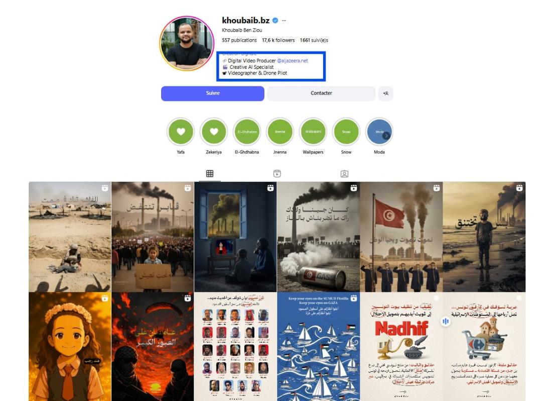 Une recherche sur Instagram renvoie vers le profil correspondant, dont la biographie le présente comme un "Creative AI Specialist" (spécialiste de la création par intelligence artificielle, en français) (lien archivé: ici).