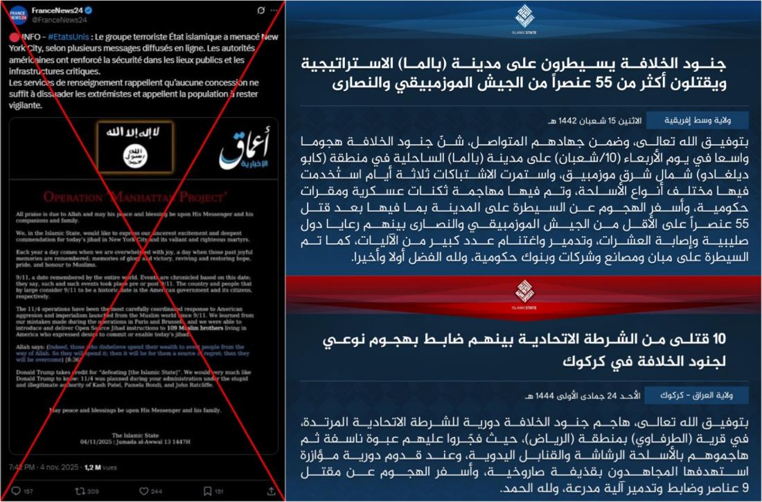 Le socialiste Zohran Mamdani a remporté début novembre 2025 la mairie de New York et deviendra ainsi l'an prochain le premier maire musulman de la plus grande ville des Etats-Unis. Sur les réseaux sociaux, il est devenu la cible d'attaques liées à son programme comme à sa religion. Dans ce contexte, de nombreux comptes ont diffusé une déclaration prétendument émise par l'Etat islamique (EI), faisant allusion à une supposée attaque à New York le jour de l'élection. Mais attention : ce communiqué est faux, ont assuré plusieurs chercheurs l'AFP.