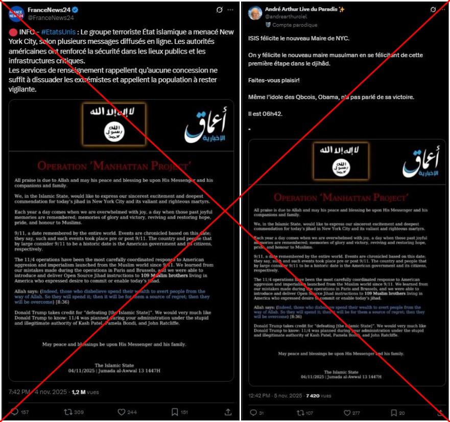 Attention à ce faux communiqué de l'Etat islamique saluant l'élection de Zohran Mamdani à New York