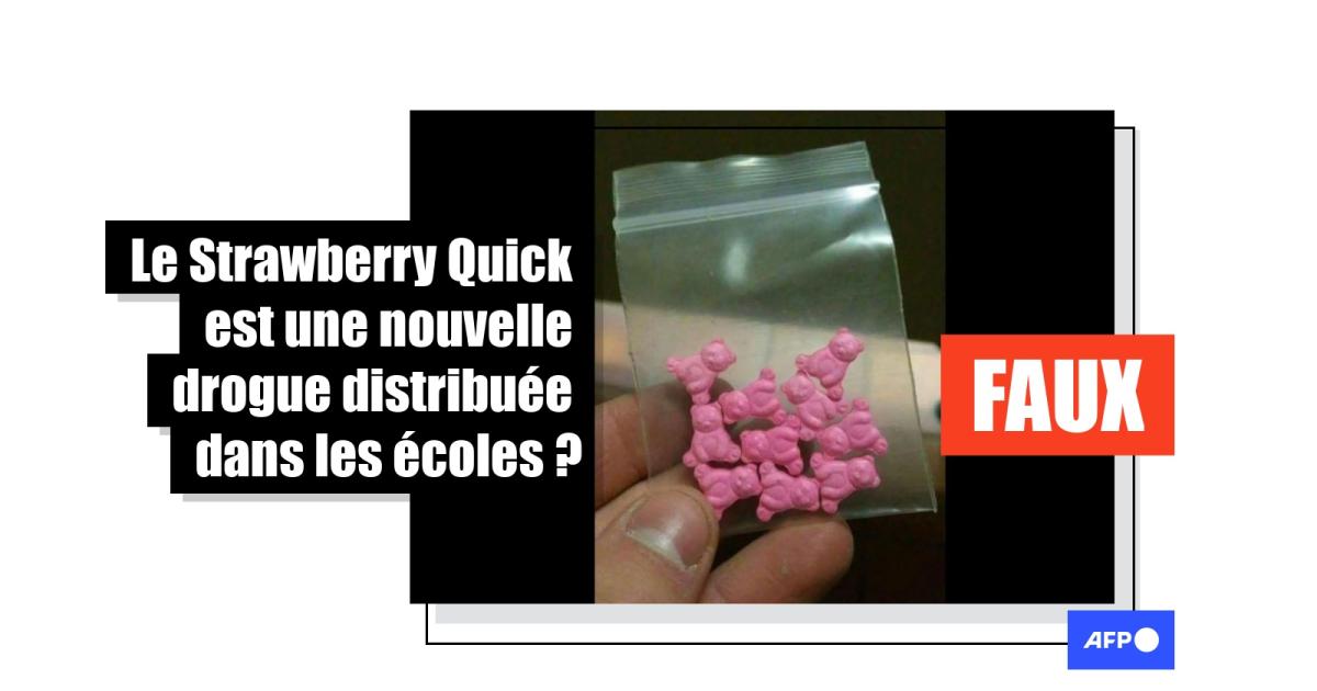 Mais attention : l'affirmation selon laquelle une drogue nommée "Strawberry Quick" serait distribuée aux enfants dans les écoles est, une nouvelle fois, infondée.
