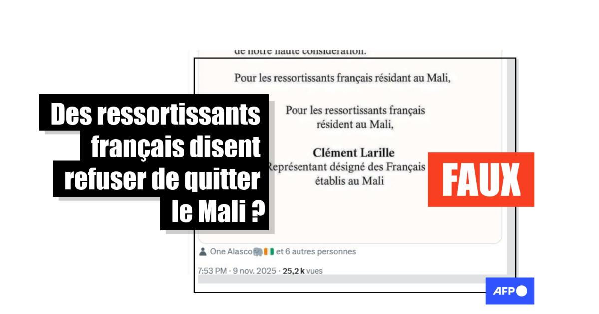 Le texte est attribué à un certain "Clément Larille", décrit comme le "représentant désigné des Français établis au Mali", et a été largement relayé sur X et Facebook.