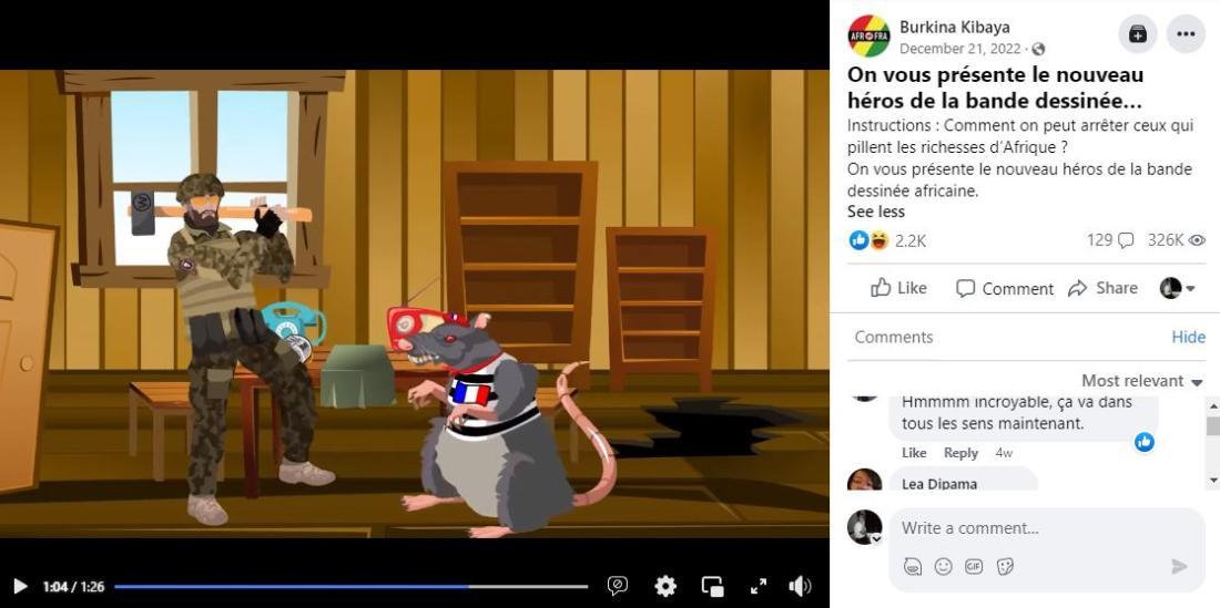 Les clips animés pro-Kremlin circulent eux largement en Afrique depuis plusieurs années. Leur message est simple : présenter la France comme une puissance prédatrice et la Russie comme un allié sécuritaire. En 2023, un clip a mis ainsi en scène des armées africaines repoussant un envahisseur français grâce à l’aide de combattants arborant l’insigne de Wagner, au Mali, au Burkina Faso puis en Côte d’Ivoire.