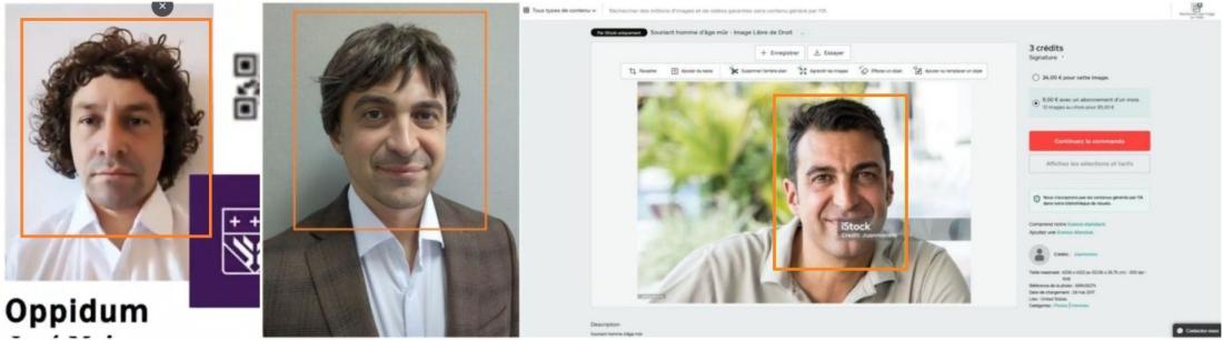 Des recherches ont permis de retrouver un individu aux traits similaires sur la banque d’images iStock. Le même visage apparaît également dans plusieurs contenus commerciaux sans lien entre eux (1, 2, 3, 4, 5).