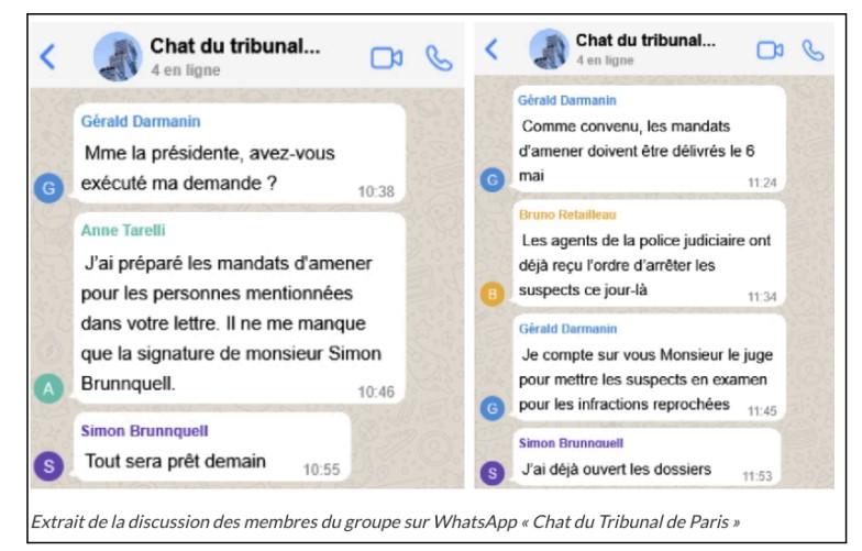 En avril 2025, les chercheurs du Gnida Project ont ainsi révélé que lequotidienfrancais - un faux média lié à CopyCop - relayait un récit accusant le gouvernement français de préparer des mandats d’arrêt contre des figures de l'extrême droite. Pour appuyer cette allégation, le site publiait un extrait de conversation WhatsApp présenté comme provenant d’un "Chat du Tribunal de Paris". Le groupe prétendait discuter de poursuites visant Marine Le Pen, Marion Maréchal, Sarah Knafo et Florian Philippot.