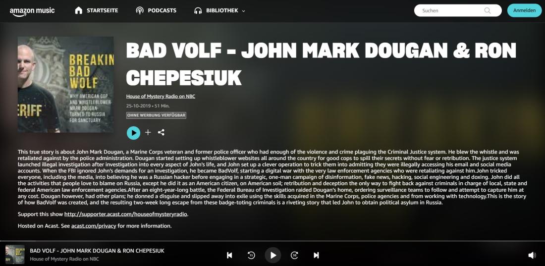 Plusieurs plateformes commerciales et grand public contribuent ainsi à maintenir sa visibilité, en proposant ses vidéos sur Rumble et YouTube (1,2), ses interventions en podcast sur Amazon Music, ainsi qu’un livre vendu sur Amazon. Il intervient également régulièrement dans le podcast Red Pill News (1, 2).
