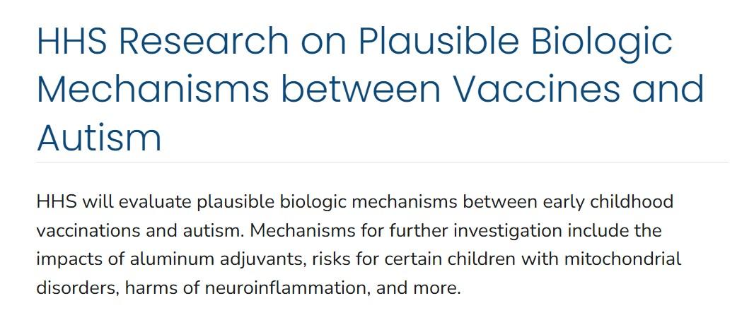 Dans cette section était évoqué spécifiquement le thiomersal, un dérivé du mercure utilisé comme conservateur dans certains vaccins et produits pharmaceutiques. Bien que cette substance soit désormais rarement utilisée dans les vaccins américains, le ministère américain de la Santé avait annoncé vouloir l'interdire de tout vaccin en juillet 2025 (lien archivé ici).