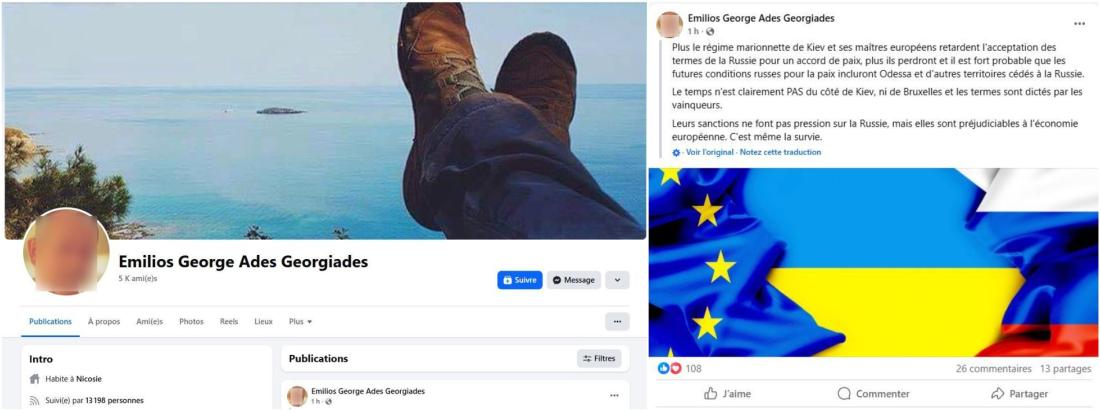 L'AFP observé que le nom d'"Emilios George Ades Georgiades" apparaissait fréquemment comme signature dans d'autres publications de "Forbidden News" : le compte relaie régulièrement les publications à caractère prorusse d'un homme du même nom, basé à Nicosie (Chypre), suivi par plus de 13.200 internautes. Ce dernier critique régulièrement l'Ukraine et les pays occidentaux.