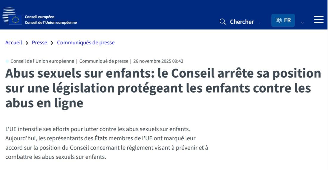 Mi-octobre 2025, les médias de différents pays européens commençaient à annoncer que l'Union européenne (UE) allait renoncer à "Chat Control", la mesure la plus critiquée de la proposition de loi européenne contre la pédocriminalité (liens archivés ici, ici et ici).