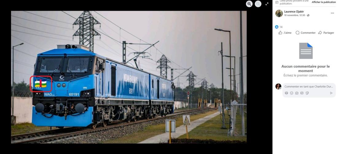 Ces images de meilleure qualité permettent de lire l'inscription "Indian railways", présente sur le côté du train. On constate aussi sur les photos plus anciennes que la locomotive arbore en réalité un drapeau indien, et non un drapeau centrafricain. La photo partagée pour vanter le développement en République centrafricaine a donc été sciemment retouchée.