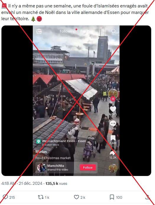 Ces images ne montrent pas des "islamistes" qui "envahissent" des marchés de Noël en Europe