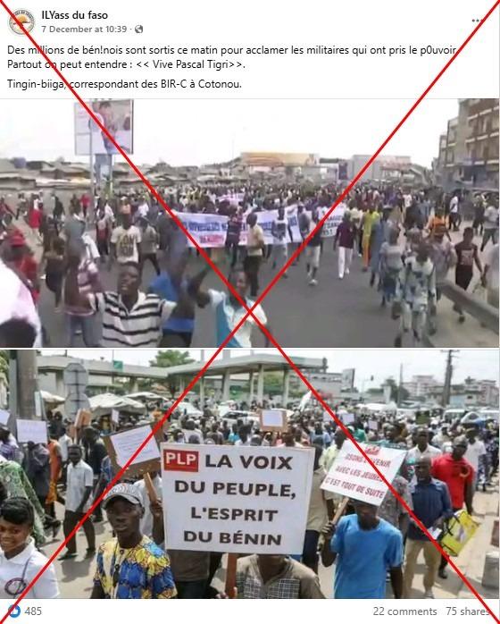 Mais cette vidéo date d'avant le putsch au Bénin et n'a pas été tournée dans ce pays.