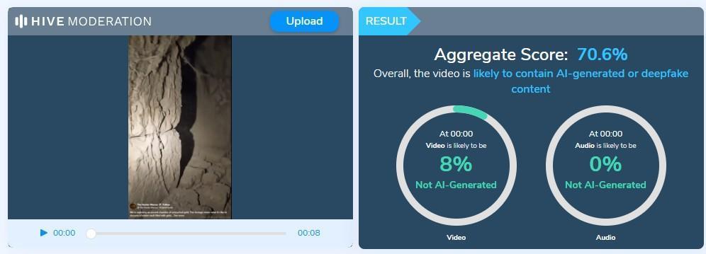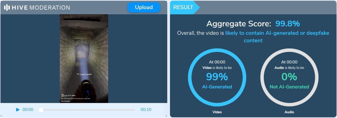 Le détecteur de vidéos IA de Hive Moderation a signalé les trois vidéos qui circulent en ligne comme étant susceptibles de contenir du contenu généré par l’IA.