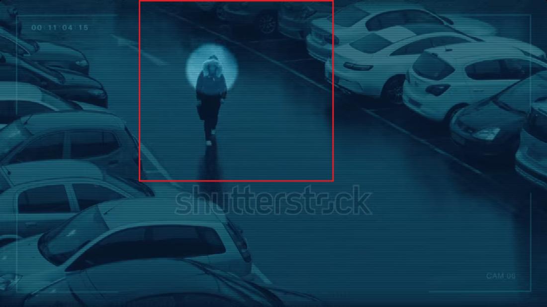 La vidéo est intitulée "CCTV [closed-circuit television, NDLR] suivi de personne anonyme dans la ville, crime, concept de preuve". Elle fait partie d'une série dédiée aux anonymes suivis par vidéosurveillance, pour une exploitation commerciale.