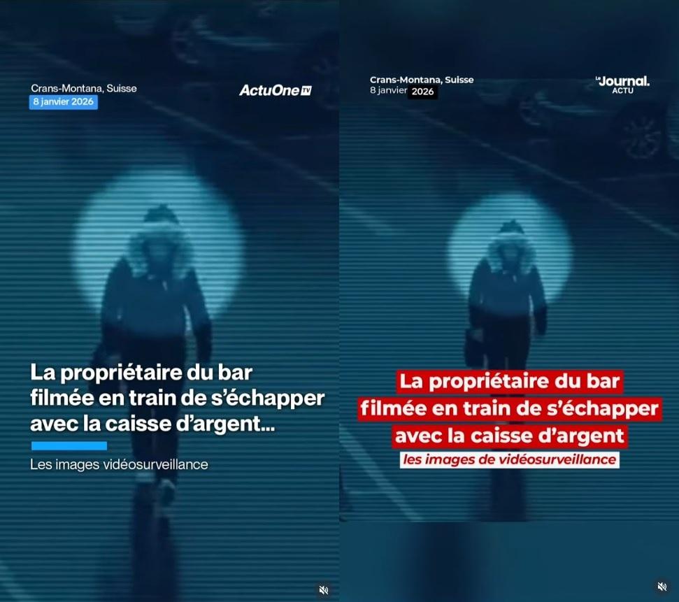 L'incendie d'un bar de la station de ski suisse de Crans-Montana, qui a fait 40 morts et 116 blessés lors de la nuit du nouvel an, a suscité une forte émotion, ainsi que la diffusion sur les réseaux sociaux de nombreuses images censées montrer les lieux du drame, parfois trompeuses. Une vidéo prétendant montrer la copropriétaire de l'établissement "en train de s'échapper" lors de l'incendie, avec la recette de la soirée, a ainsi largement circulé. Mais il s'agit en réalité d'images de vidéosurveillance issues d'une banque d'images, sans lien avec l'incendie.