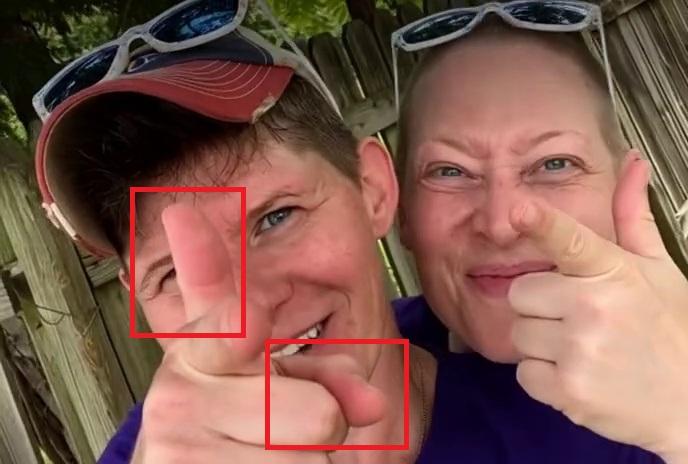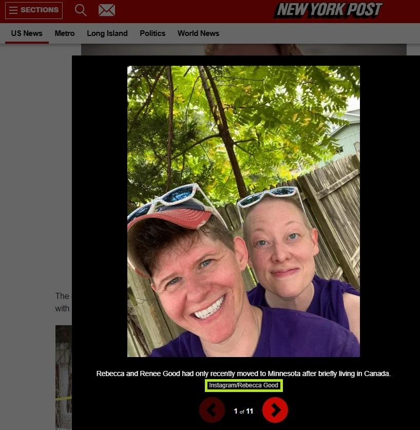 En effectuant une nouvelle recherche d'images inversées, l'AFP a constaté que la vidéo est en réalité un deepfake généré à partir d'un selfie authentique de Rebecca Good, l'épouse de Renée Good, au côté de cette dernière.