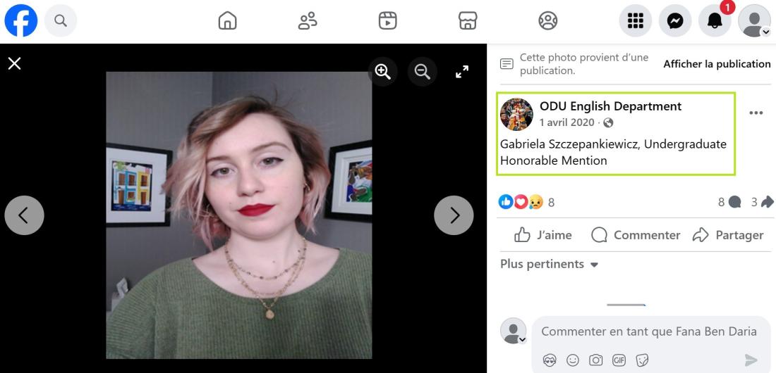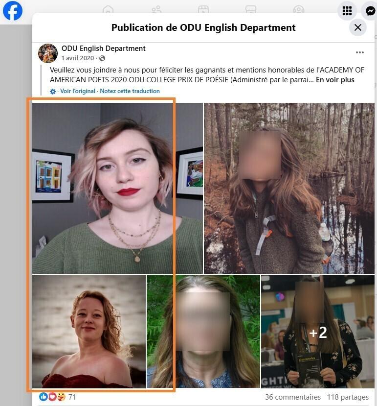 Ce post annonçait les lauréats du Prix de poésie de l'université pour l'année 2020 : Gabriela Szczepankiewicz y recevait une mention honorable au niveau licence, tandis que l'œuvre de Renée Good était désignée lauréate dans la même catégorie (liens archivés ici et ici).