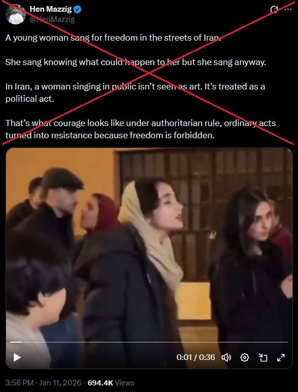 Les autorités iraniennes ont répondu par une répression sanglante au mouvement de contestation lancé en décembre 2025 dans le pays. Dans ce contexte, de nombreuses vidéos présentées comme des images de rassemblements ou de violences commises par les forces de l'ordre ont circulé sur les réseaux sociaux. Si certaines d'entre elles sont authentiques, l'AFP a examiné et vérifié plusieurs séquences devenues virales alors qu'elles ont été filmées antérieurement à la contestation en cours ou ailleurs qu'en Iran.