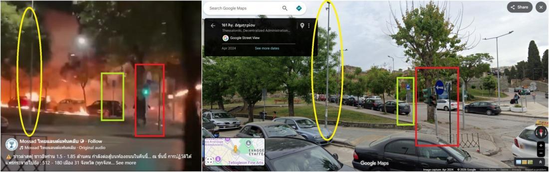 Certains éléments de la vidéo correspondent aux images de Google Street View des rues proches du consulat (lien archivé ici).