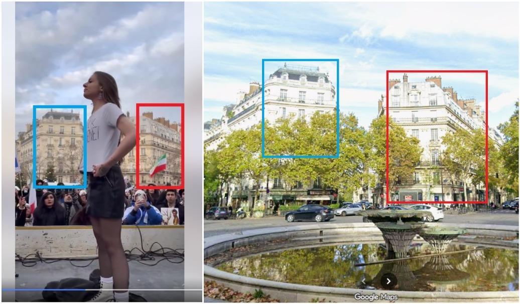 La manifestation a eu lieu à Paris le 11 janvier, a précisé la militante le 13 janvier à l'AFP. Des éléments de la vidéo correspondent également aux images de Google Street View des lieux de la manifestation (lien archivé ici).
