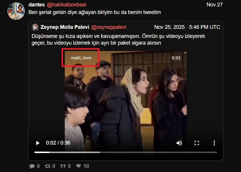 Une recherche d'image inversée sur Yandex permet de retrouver la vidéo dans un post rédigé en turc le 27 novembre 2025 sur le réseau social Aguea, qui se présente comme une "alternative à Twitter" (aujourd'hui "X").