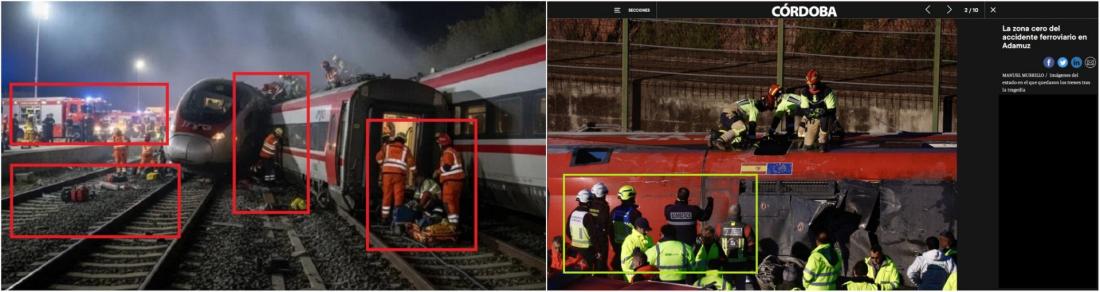 Une collision survenue le 18 janvier entre deux trains à grande vitesse en Andalousie, dans le sud de l'Espagne, a fait plus de quarante morts et une centaine de blessés. Quelques heures après le drame, une image prétendant montrer la scène de l'accident, avec des pompiers autour des carcasses de deux trains encastrés, a largement circulé sur les réseaux sociaux. Mais elle a été générée par intelligence artificielle (IA), comme le suggèrent certaines incohérences visuelles et comme le confirme un outil de détection.