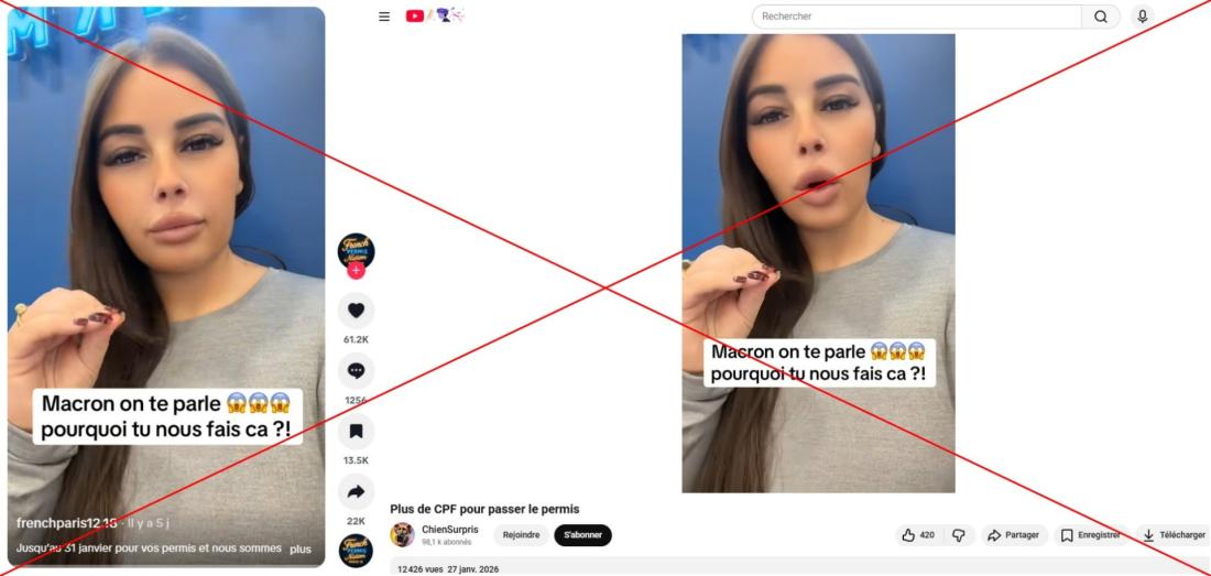 Selon elle, cette mesure concernerait toutes celles et ceux "qui ont du CPF" et "qui doivent passer leur permis voiture, [...] permis auto, manuel, permis moto [et] permis poids lourd". "Bloquez vite votre CPF", insiste-t-elle dans cette vidéo, également relayée sur YouTube et TikTok (1, 2, 3), affirmant qu'il s'agit d'"une urgence", car "le 31 janvier, c'est terminé".