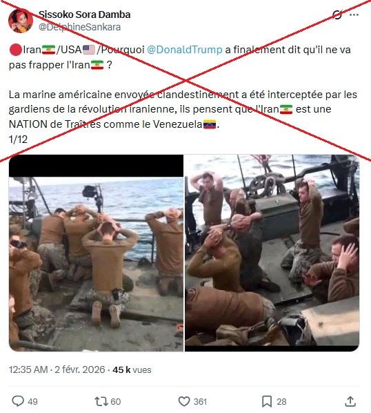 Ce climat tendu est propice à la propagation de rumeurs et fausses informations. Dès le 2 février, un compte X surfait ainsi sur ces tensions diplomatiques pour affirmer que des soldats américains auraient été arrêtés par l'Iran.