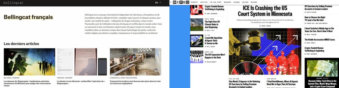 En l'occurrence, les vidéos usurpent les logos (mais pas les formats ni le ton) des médias Wired et Bellingcat, respectivement un média en ligne traitant de technologie et un média d'investigation international reconnu.