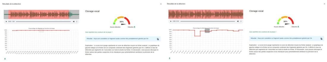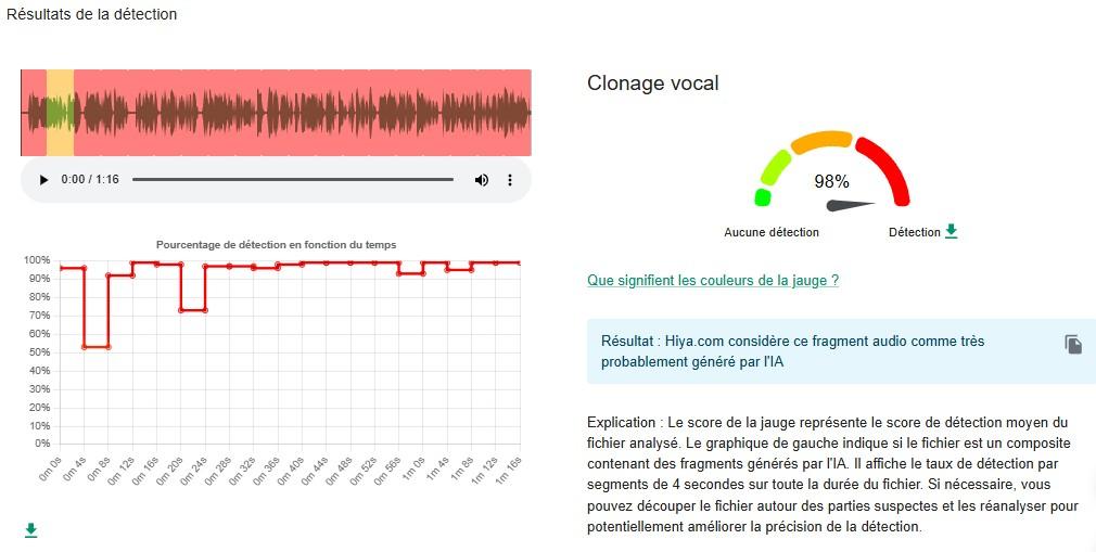 Une analyse de l'audio réalisée par l'AFP, à l'aide du détecteur de deepfakes Hiya.com sur l'outil de vérification InVID-WeVerify (co-développé par l'AFP), indique que l'enregistrement a été "très probablement généré par l'IA".