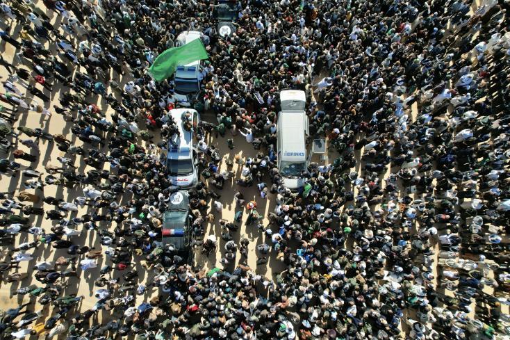 Mahmud Turkia précise aussi que la foule à la véritable cérémonie n'était pas du tout bien rangée comme sur l'image diffusée sur les réseaux sociaux. Il y avait au contraire "beaucoup de confusion", "les gens n’étaient pas alignés comme cela", explique-t-il, "ils entouraient plutôt [le convoi] à droite à gauche, mais ils n'étaient alignés comme sur cette image".