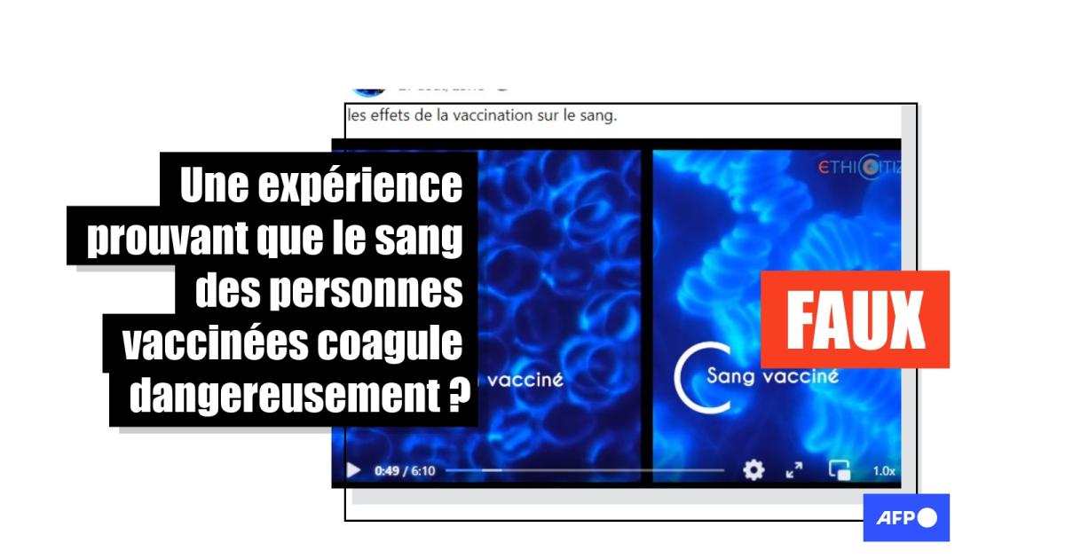 Cette vidéo contient de nombreuses fausses informations, ont confirmé plusieurs experts à l'AFP. L'expérience menée ne permet de tirer aucune conclusion scientifique: on ne sait pas d'où viennent les deux échantillons de sang présentés, les conclusions sont tirées à partir d'une analyse du sang de seulement deux personnes et la technique utilisée ne permet pas de conclure à une coagulation du sang d'une personne vaccinée.