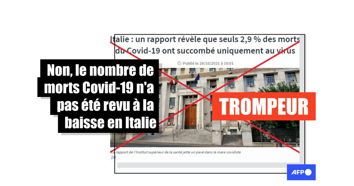 La publication renvoie à un article publié le 21 octobre 2021 sur le site internet du quotidien italien Il Tempo qui tire les mêmes conclusions du rapport et a également été abondamment relayé sur les réseaux sociaux transalpins. "Grand gâchis dans le bilan des décès. Pour l'ISS, la plupart des décès n'ont pas été causés par le Covid", titrait l'auteur de l'article, Franco Bechis.