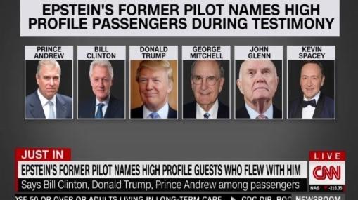 Dans une transcription (en anglais) de l'émission, on peut également lire que, selon la journaliste à l'antenne, l'ex-pilote d'Epstein a cité "le Prince Andrew, les ex-présidents américains Bill Clinton et Donald Trump, les sénateurs George Mitchell et John Glenn et l'acteur Kevin Spacey".