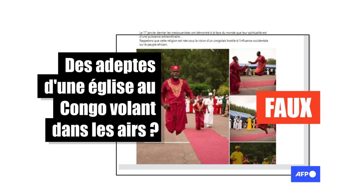 Une compilation de cinq photos montre des hommes vêtus de tunique, rouge vif pour les uns, jaune pour les autres. Certains sont à plus d’un mètre du sol. “ÇA SE PASSE AU CONGO”, commente l’auteur d’une publication partagée près de 1.000 fois depuis le 22 janvier. "Ceux qui ont assisté à cette grande rencontre de la spiritualité africaine ont été surpris de voir des gens s'envoler", ajoute-t-il. Ils s'envolent "comme dans les films chinois", lit-on dans d'autres publications (1,2).