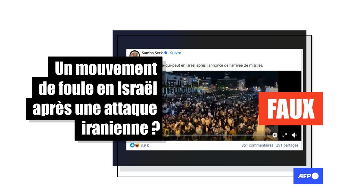 C’est dans ce contexte très tendu qu’une vidéo de 26 secondes circule sur les réseaux sociaux depuis début mars, montrant un mouvement de panique d'une foule réunie de nuit sur une esplanade. "C'est le sauve-qui-peut en Israël après l’annonce de l’arrivée de missiles", affirme un internaute sénégalais dans une publication ayant suscité presque 4.000 réactions depuis le 1er mars.