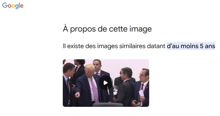 Une recherche d'image inversée sur Google, ainsi que la consultation de la rubrique "À propos de cette image", indiquent qu'"il existe des images similaires datant d'au moins 5 ans".