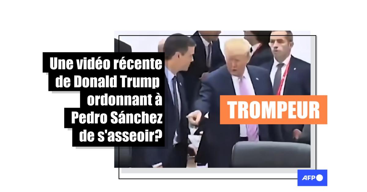 Le Premier ministre espagnol Pedro Sánchez refuse que les Etats-Unis utilisent ses bases militaires pour attaquer l'Iran, estimant que la guerre menée par les USA et Israël depuis fin février constitue "une erreur extraordinaire". Dans ce contexte, des internautes ont partagé début mars une vidéo, en affirmant qu'elle montrerait Donald Trump ordonnant fermement à M. Sánchez de s'asseoir, un geste hostile en forme de réponse à la position exprimée par l'Espagne. En réalité, la séquence date de juin 2019 et montre une interaction - qualifiée de "cordiale" par le gouvernement espagnol - entre les deux dirigeants lors du sommet du G20 au Japon.
