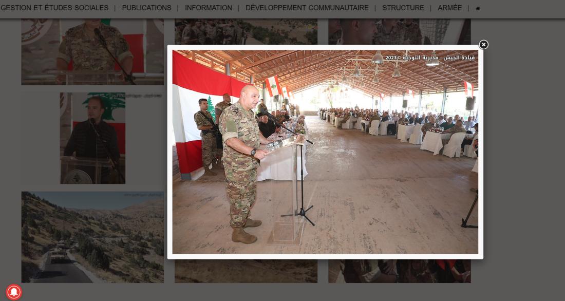 On retrouve sur le site des forces armées libanaises d'autres photos de l'événement, avec des angles différents. A l'image, toujours le même micro noir et le même pupitre transparent (lien archivé ici).