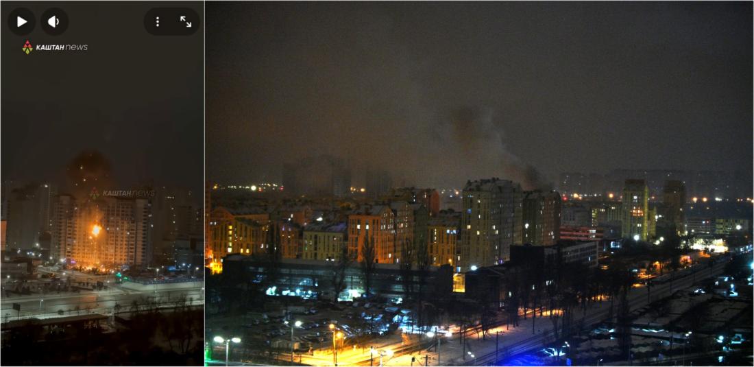 Une comparaison de ces photos avec la vidéo d'origine relayée sur YouTube nous permet de confirmer que la vidéo montre un immeuble à Kiev.