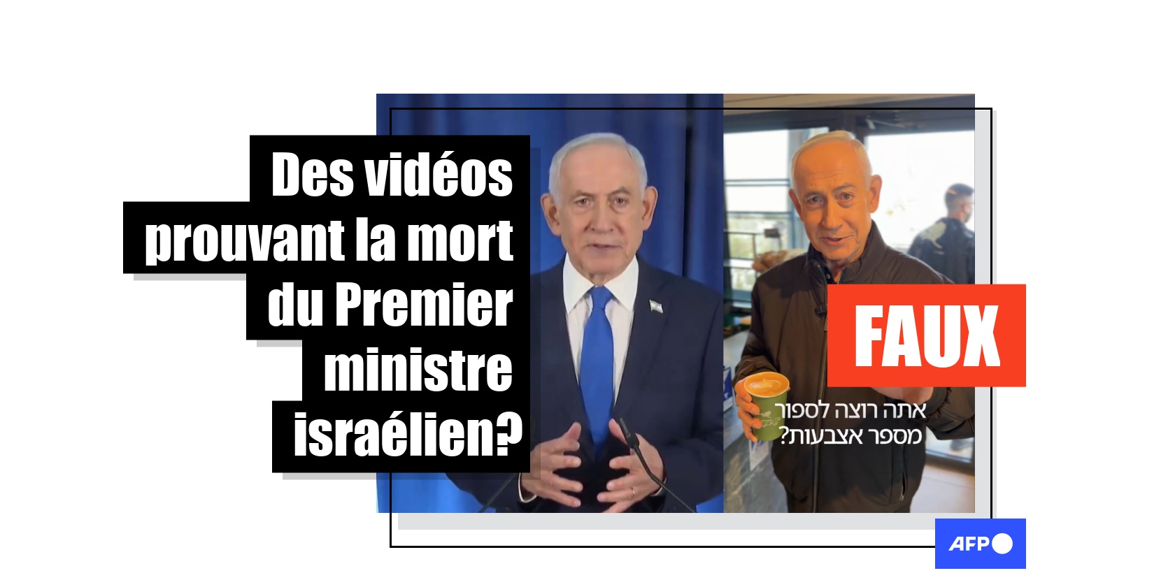 L'ampleur prise par cette infox a incité les autorités israéliennes à réagir : quelques jours plus tard, une vidéo de démenti est publiée sur le compte X du Premier ministre israélien, où l'on voit Benjamin Netanyahu dans un café de Tel Aviv, plaisantant sur les rumeurs concernant sa mort et même sur le nombre de ses doigts (liens archivés ici, ici et ici).