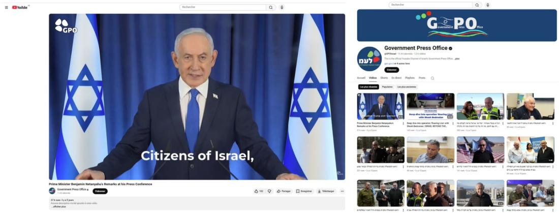 Celle-ci a été publiée par le canal Government Press Office, la chaîne YouTube officielle du service de presse du gouvernement israélien (lien archivé ici). À première vue, rien ne la distingue d'autres allocutions passées du Premier ministre visibles sur la chaîne.