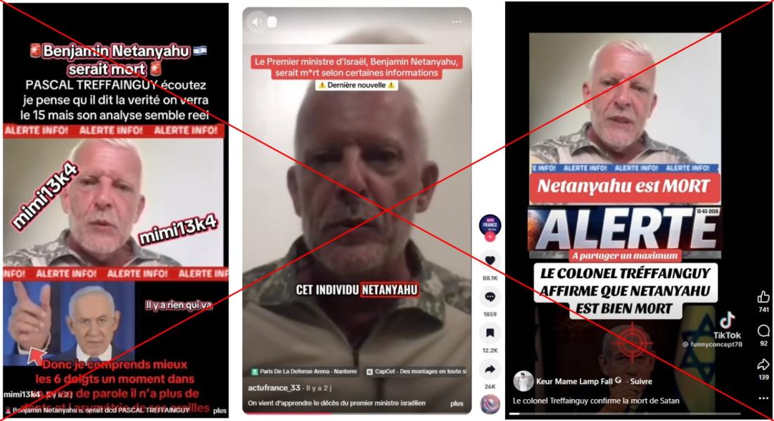 On y voit un homme habillé en style militaire, se présentant comme colonel de l'armée française et affirmant notamment que Benjamin Netanyahu aurait été "grièvement blessé" par un tir de missile iranien, et serait "décédé" le 11 mars.