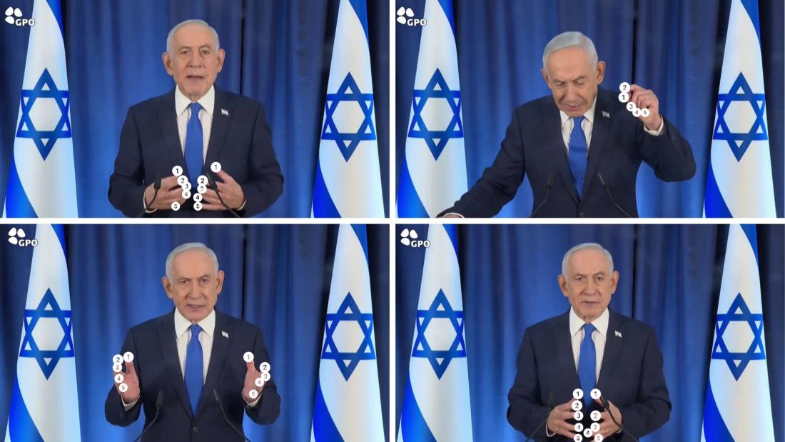Mais des internautes ont affirmé que Benjamin Netanyahu aurait plus de cinq doigts à une main sur certains plans : entre 2023 et 2024, cette diffuculté pour certains modèles de génération d'image par IA à représenter des mains humaines de manière réaliste est devenue à ce moment là l'une des façons les mieux connues de distinguer une fausse vidéo.
