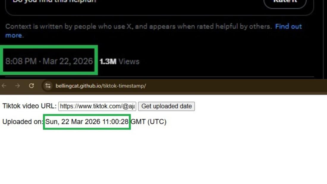 Un outil développé par le média d'investigation Bellingcat nous permet de retrouver l'heure précise de la publication, qui est bel et bien antérieure à celle du compte "Angel Paradize" sur X.