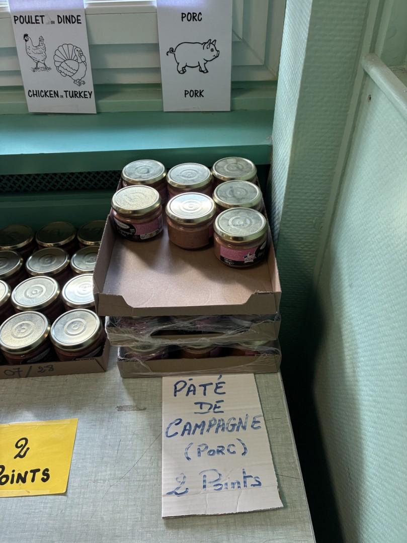 Lors de la distribution, les bénéficiaires peuvent librement choisir une portion de "protidique" (qui contient des protides). Ce 26 mars, le choix s'étalait entre conserves de poisson, terrine de poulet ou dinde, ou pâté de porc.