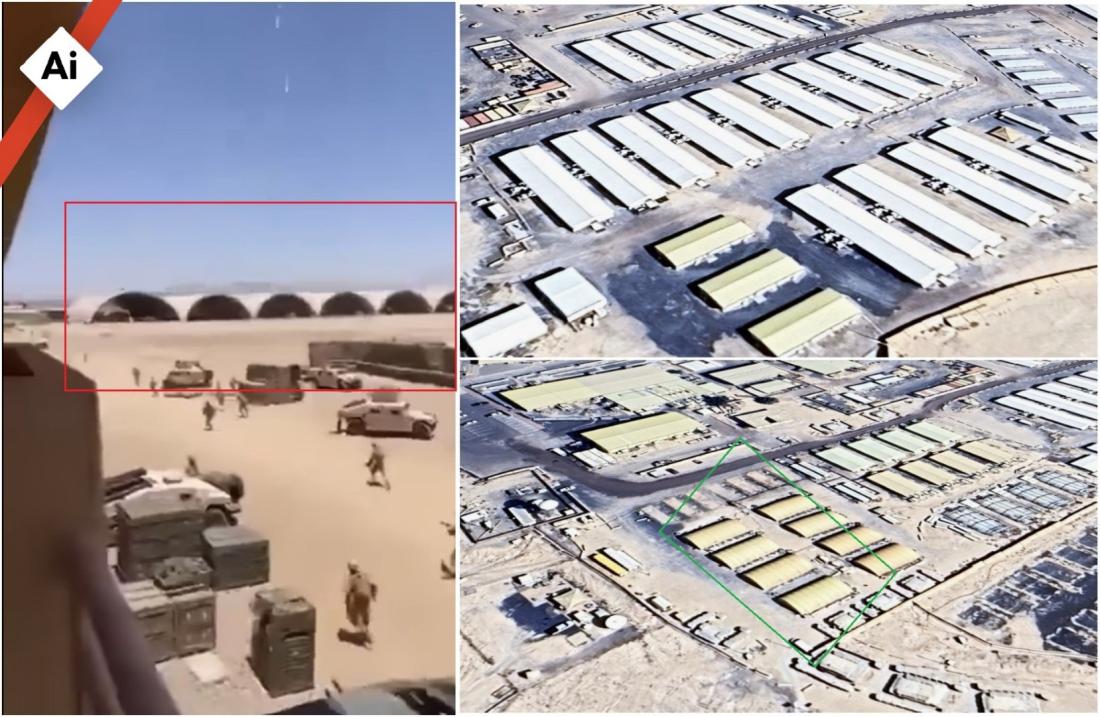 Des images satellites de la base publiées sur le site du New York Times, publiées après les frappes iraniennes, montrent enfin que les chutes de missiles visibles sur la vidéo ne correspondent pas à leur véritable point d'impact (lien archivé ici).
