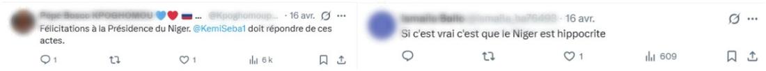En commentaires, certains internautes congratulent les autorités nigériennes, quand d'autres dénoncent leur potentielle hypocrisie dans cette affaire :
