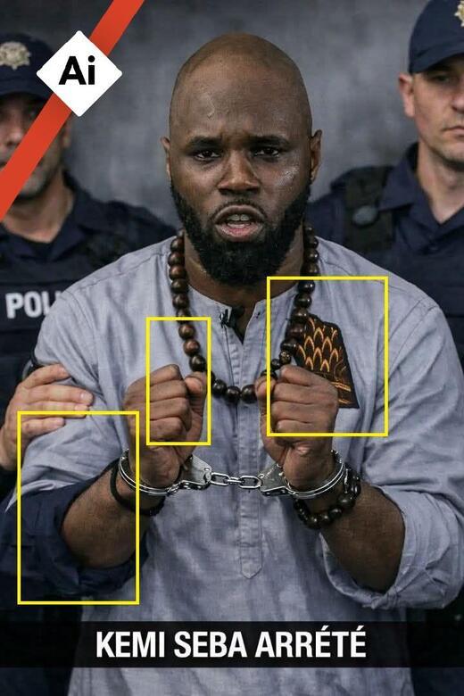 L'influenceur panafricaniste Kemi Seba, visé par un mandat d'arrêt du Bénin et proche de la Russie, a été arrêté la semaine dernière par la police sud-africaine pour séjour illégal dans ce pays. Alors qu'il est toujours en détention provisoire, des comptes basés en Afrique francophone diffusent sur les réseaux sociaux de fausses rumeurs, ciblant notamment sa situation administrative. Certains soutiennent ainsi que la Présidence du Niger aurait annoncé dans un communiqué le retrait du passeport diplomatique qu'elle lui a délivré en 2023. Les autorités nigériennes ont au contraire assuré que le document en possession de l'intéressé était toujours valide. D'autres diffusent des images censées montrer l'arrestation de l'influenceur, mais ces visuels qui présentent des incohérences ont très certainement été générés par IA.